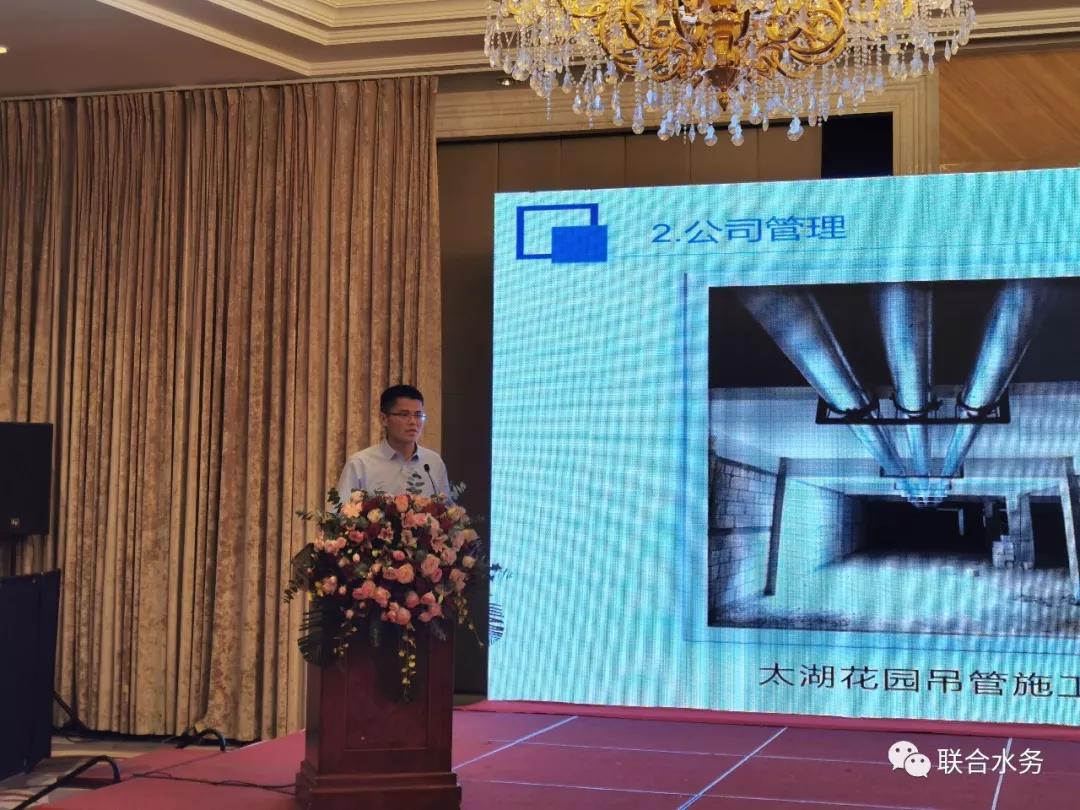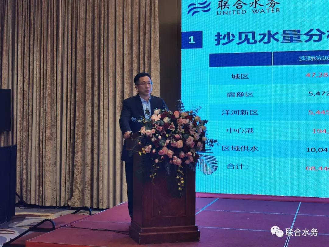 圖2:宿遷聯(lián)合市政工程有限公司總經(jīng)理梁丹先生作工作總結(jié) 宿遷銀控自來水有限公司總經(jīng)理曾真做2019年宿遷公司工作匯報(bào)時(shí)說:宿遷供水項(xiàng)目2019年全年供水安全、穩(wěn)定,嚴(yán)峻形勢(shì)下,圓滿度過夏季高峰供水期;工程建設(shè)卓有成效,河湖連通工程全面完工運(yùn)行,確保了原水供應(yīng)的安全可靠,二水廠四期工程順利施工中,明年公司供水能力將大大提升,達(dá)到43萬噸/日;農(nóng)村管網(wǎng)改造完成階段性任務(wù);全新GIS平臺(tái)上線運(yùn)行,客戶服務(wù)語音呼叫系統(tǒng)全面升級(jí)、網(wǎng)上營(yíng)業(yè)廳正式上線,信息化建設(shè)取得了很大發(fā)展;黨務(wù)建設(shè)有了重大突破,公司黨總支升格為黨委,黨務(wù)活動(dòng)開展的有聲有色;文明創(chuàng)建再創(chuàng)佳績(jī),連續(xù)第三次蟬聯(lián)“省文明單位”。曾總同時(shí)指出,公司也要正視自身尚存在的一些不足,如產(chǎn)銷差與總部要求還有不小的差距,2020年,降低產(chǎn)銷差任務(wù)艱巨,但他堅(jiān)信只要大家共同努力,就能突破瓶頸,找到新的出口。2020年,宿遷公司制定了有效降低產(chǎn)銷差、確保二水廠四期如期運(yùn)行、配合集團(tuán)總部圓滿完成公司上市各項(xiàng)工作的三大目標(biāo)任務(wù)。