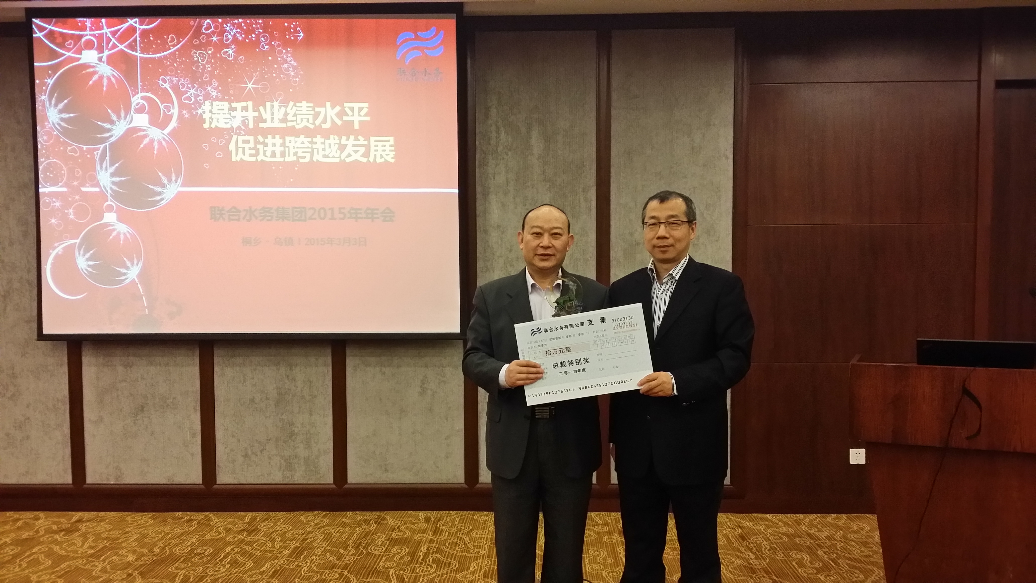 『夏總榮獲“總裁特別獎”』 上善若水 源遠流長 壯士暮年而基業(yè)長青。作為聯(lián)合水務(wù)項目團隊“元老”之一,夏承光將前大半生獻給了水務(wù)事業(yè),獻給了聯(lián)合水務(wù)的成長壯大。他說,水乃生命之源,滋養(yǎng)萬物而生生不息,與水結(jié)緣,與聯(lián)合水務(wù)結(jié)緣,踐行聯(lián)合水務(wù)“供優(yōu)質(zhì)之水、服誠信之務(wù)”的經(jīng)營宗旨,我們付出,我們努力,我們奮斗,城市可以發(fā)展,社會可以進步,老百姓生活水平可以提高,我們雖苦猶榮,是值得的。長風(fēng)破浪會有時,人間正道是滄桑,使命光榮,任重道遠。在夏承光老一輩聯(lián)合水務(wù)人的帶領(lǐng)與感召下,一代代聯(lián)合水務(wù)人將不忘初心,接續(xù)奮斗,開新天,辟高地,再創(chuàng)未來。
