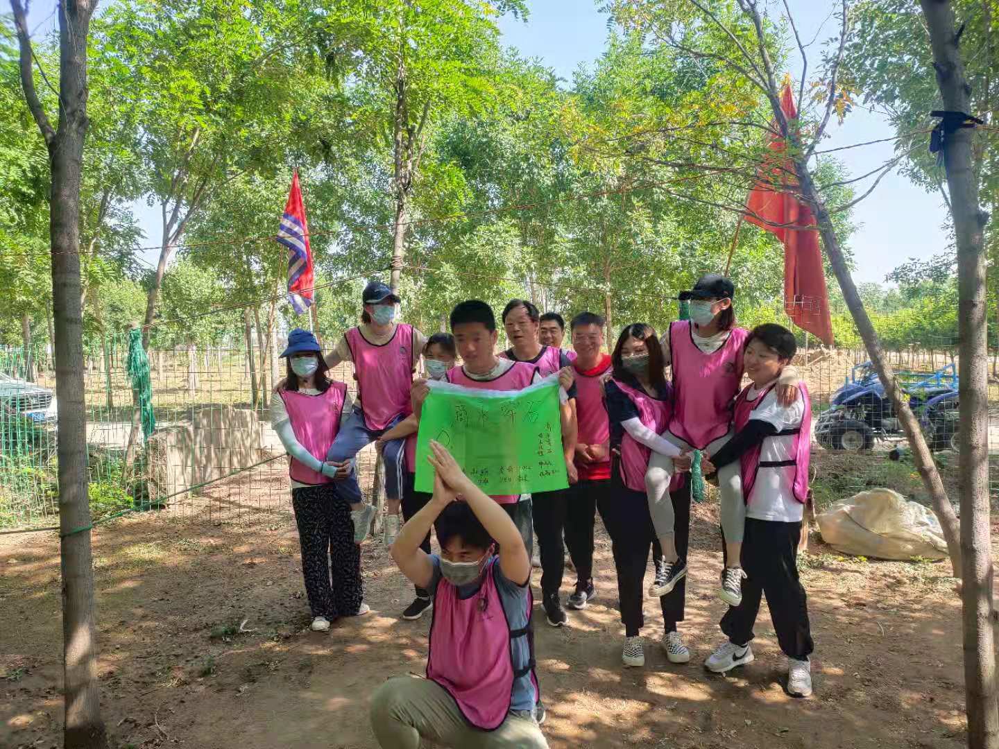 圖:團(tuán)建合影 早上8:30,全員集合完畢,整裝到達(dá)襄汾沁馨園拓展培訓(xùn)基地。 教練按照公司完成小組的分配,換隊(duì)服,“戰(zhàn)隊(duì)”雛形成立。經(jīng)過破冰項(xiàng)目“桃花朵朵開”,打破堅(jiān)冰,開始全天活動。 正式訓(xùn)練前,由隊(duì)員選出隊(duì)長,在選出隊(duì)長的引領(lǐng)下一起商討出各自隊(duì)名,隊(duì)徽和隊(duì)歌。