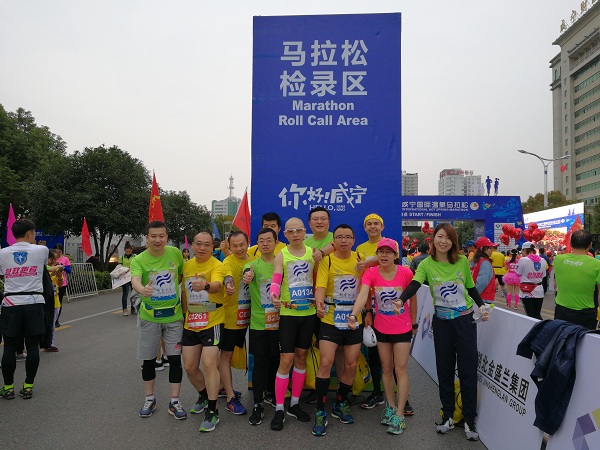 當(dāng)天7:20,集團(tuán)63名參賽人員和咸寧公司70名啦啦隊(duì)和服務(wù)人員,在起點(diǎn)人民廣場(chǎng)集中,高舉“新起點(diǎn)、新征程、新時(shí)代、新作為”、“聯(lián)合水務(wù),服務(wù)咸寧”的橫幅,大家步伐整齊,揮舞彩旗,方陣格外引人注目,為本屆馬拉松賽事增添了一抹亮麗的風(fēng)景。